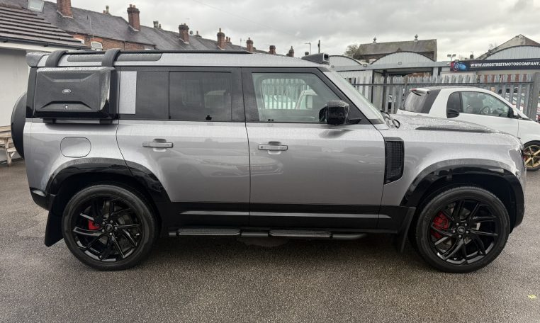 FULL LANDROVER SERVICE HISTORY JUST SERVICED, EIGER GREY, UPGRADED WIDE ARCH KIT FITTED, SNORKEL, SIDE STEPS, FULL BLACK PACK, UPGRADED 22 INCH ALLOY WHEELS, 360 CAMERAS, HEATED STEERING WHEEL, HEATED SEATS, TOW BAR, ADJUSTABLE AIR SUSPENSION, DIGITAL DASH, TWIN ENTERTAINMENT SYSTEMS IN THE REAR FOR YOUTUBE/NETFLIX/DISNEY+ ETC, SIDE-MOUNTED LADDER FITTED, SIDE-MOUNTED LAND ROVER STORAGE BOX FITTED, UPGRADED LIGHTS FITTED TO ROOF, UPGRADED DAYTIME RUNNING LIGHT GRILLE, UPGRADED URBAN-STYLE FRONT BONNET TRIMS, UPGRADED SPOILER FITTED, AND MORE.